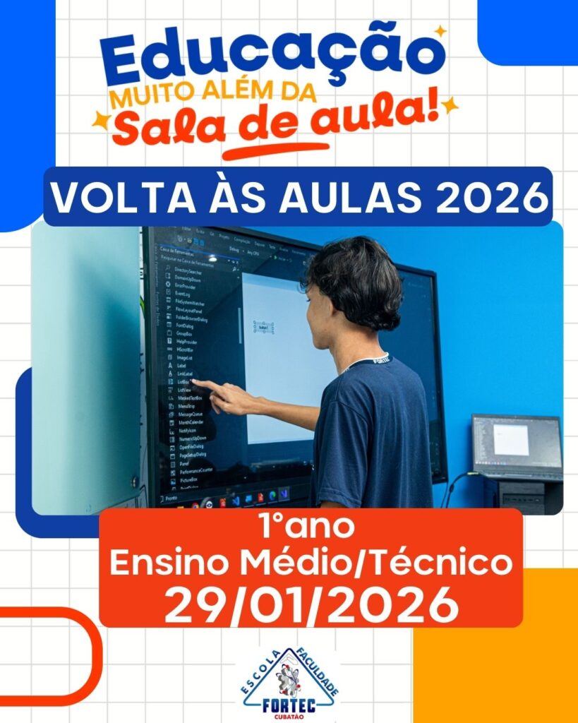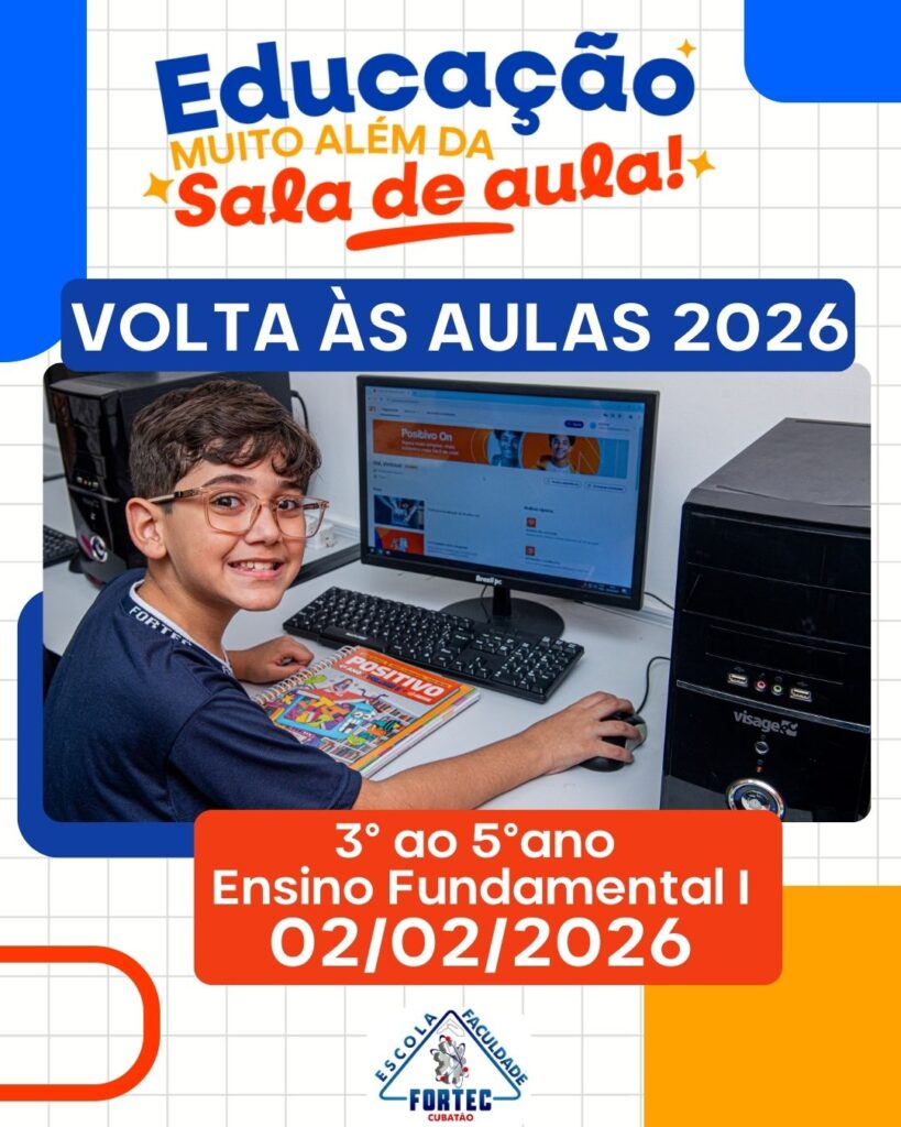 (13)3361-7300 Av. Nações Unidas, 956 - Cubatão Seg - Sex 7h30 às 23h00 Facebook-f Instagram Whatsapp Youtube A ESCOLA Nossa História Missão, Visão e Valores Diferenciais CURSOS Educação Infantil Fundamental I Fundamental II Ensino Médio Técnico Curso Técnico Especial INFORMAÇÕES Curso de Férias Lista de Material 2026 Volta às Aulas 2026 – Dias e Horários Circular de Direitos e Obrigações do Aluno Bolsista Confecção de Uniformes Portal Perseus A ESCOLA Nossa História Missão, Visão e Valores Diferenciais CURSOS Educação Infantil Fundamental I Fundamental II Ensino Médio Técnico Curso Técnico Especial INFORMAÇÕES Curso de Férias Lista de Material 2026 Volta às Aulas 2026 – Dias e Horários Circular de Direitos e Obrigações do Aluno Bolsista Confecção de Uniformes Portal Perseus VOLTA ÀS AULAS 2026 Copyright © | Escola Fortec Cubatão desde 1983 formando gerações. Facebook-f Instagram Whatsapp Youtube